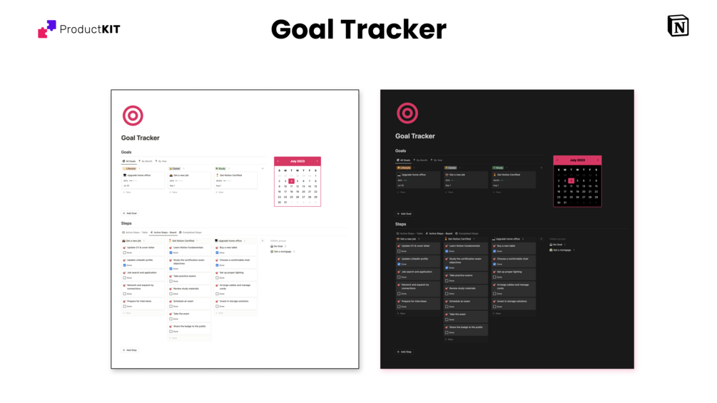 Designed to help you in quickly getting started with Notion, without the hassle of building templates from scratch.